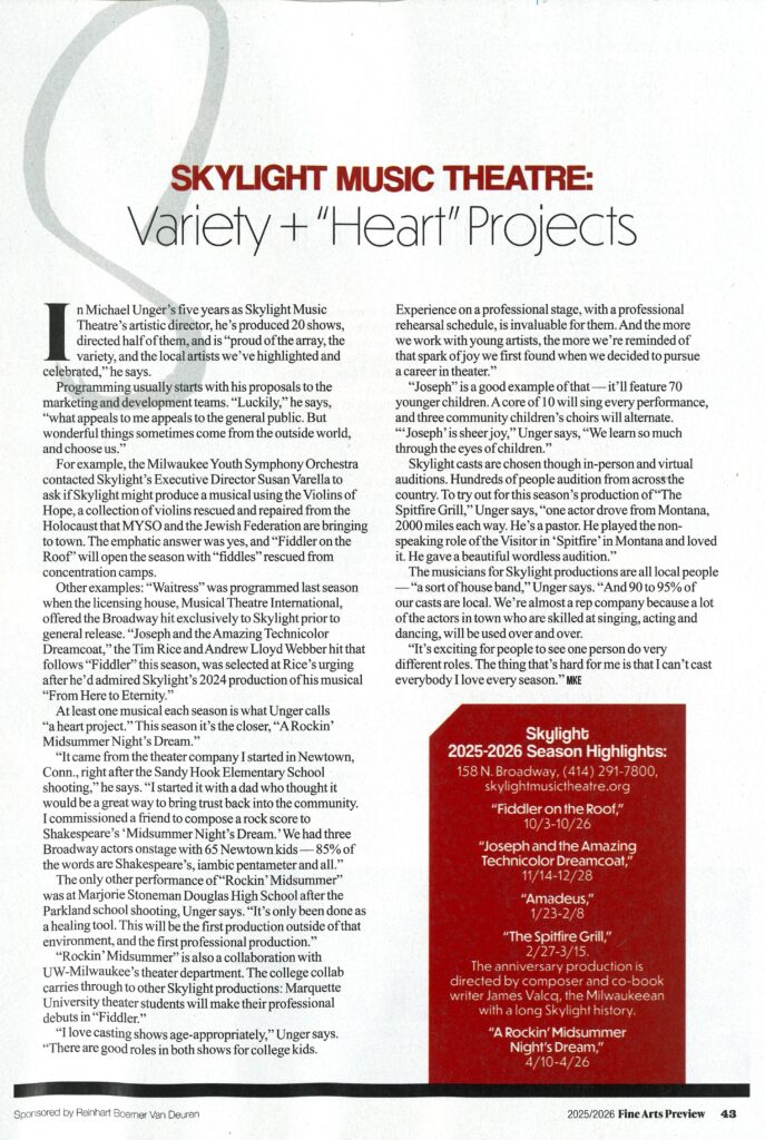 Skylight Music Theatre’s 63rd Season Announcement – hosted by Michael Unger